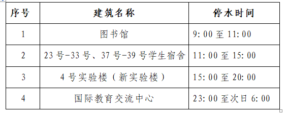 请相关老师和同学予以支持,提前做好准备,安排好工作和休息时间,因停水给大家带来的不便,敬请谅解。