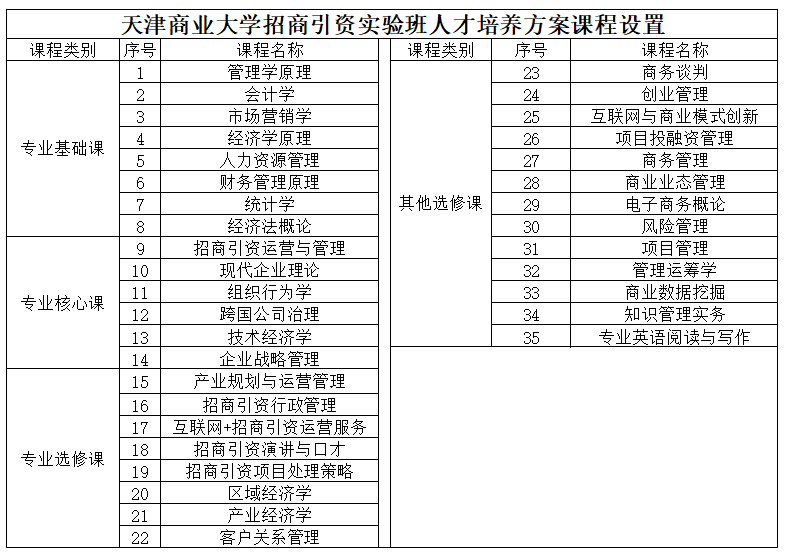 5.就业方向:招商引资实验班以就业为导向,大四进入见习基地见习,计划考研或有其他实习安排的同学请报名前务必考虑清楚。