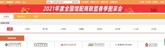 2.1、出版社分会场:按出版社综合分类和出版公司名称展示各出版社图书,点击分类首先展示该类别下的出版社名单,点击出版社名称即可进入选书界面。