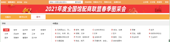 5、销量排行榜:左上角的【销量排行榜】对出版社、图书公司、出版社分类、图书单品销量进行时时榜单排行。可作为选书参考。