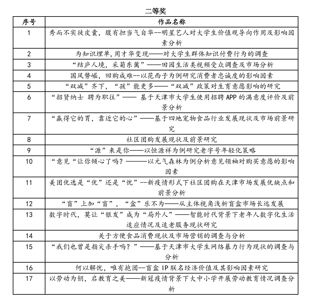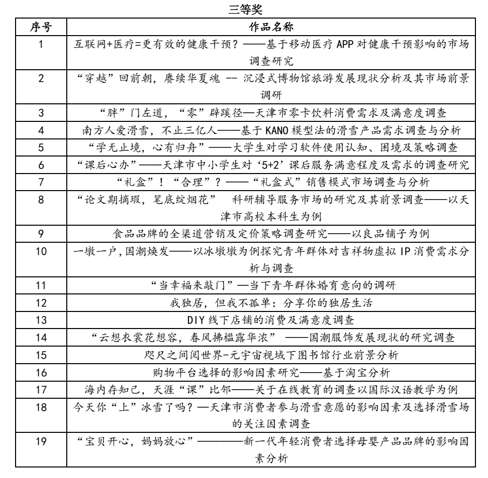 近日,由教务处主办、理学院承办的第十二届全国大学生市场调查与分析大赛beat365英国官方网站校赛顺利结束。共有来自全校的80支团队参加实践赛,通过“报告评审+线上视频展示和实时答辩”相结合的竞赛方式,评出特等奖3项、一等奖12项、二等奖17项、三等奖19项,其中特等奖和一等奖作品推荐参加天津赛区竞赛。