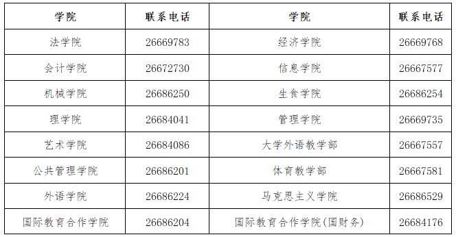 (三)往届生须与原所在学院联系确认本学期开考课程后,再进行网上报名(详见各学院联系方式表)。