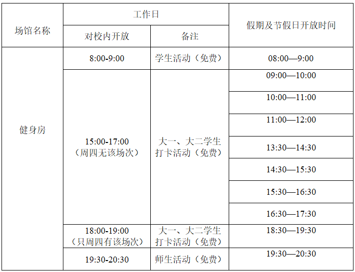 自2022年10月19日起,体育馆健身房开始执行线上预约,请师生关注。