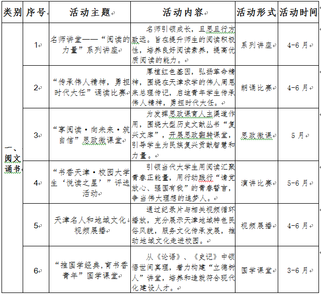 为深入学习贯彻习近平新时代中国特色社会主义思想,全面贯彻党的教育方针,落实立德树人根本任务,传承红色基因铸魂育人,弘扬天津地域文化,引导学生养成良好读书习惯,营造beat365官网“书香校园”文化氛围。在2023年世界读书日来临之际,beat365官网将举办以“共读践行初心·传承津沽文化”为主题的阅读推广系列活动。