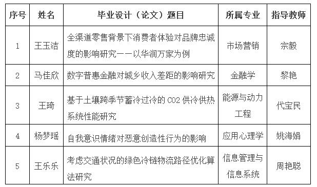 根据《市教委关于做好第十四届天津市级本科生优秀毕业设计(论文)评选工作的通知》(津教高函〔2023〕21号)的要求,经学院推荐、学校审查及校外专家评审,beat365官网拟推荐管理学院、经济学院、机械工程学院、法学院及信息工程学院报送的5篇校级优秀毕业设计(论文)参加“第十四届天津市级本科生优秀毕业设计(论文)评选”,现将拟推荐的毕业设计(论文)名单及全文(见附件1-5)公示如下: