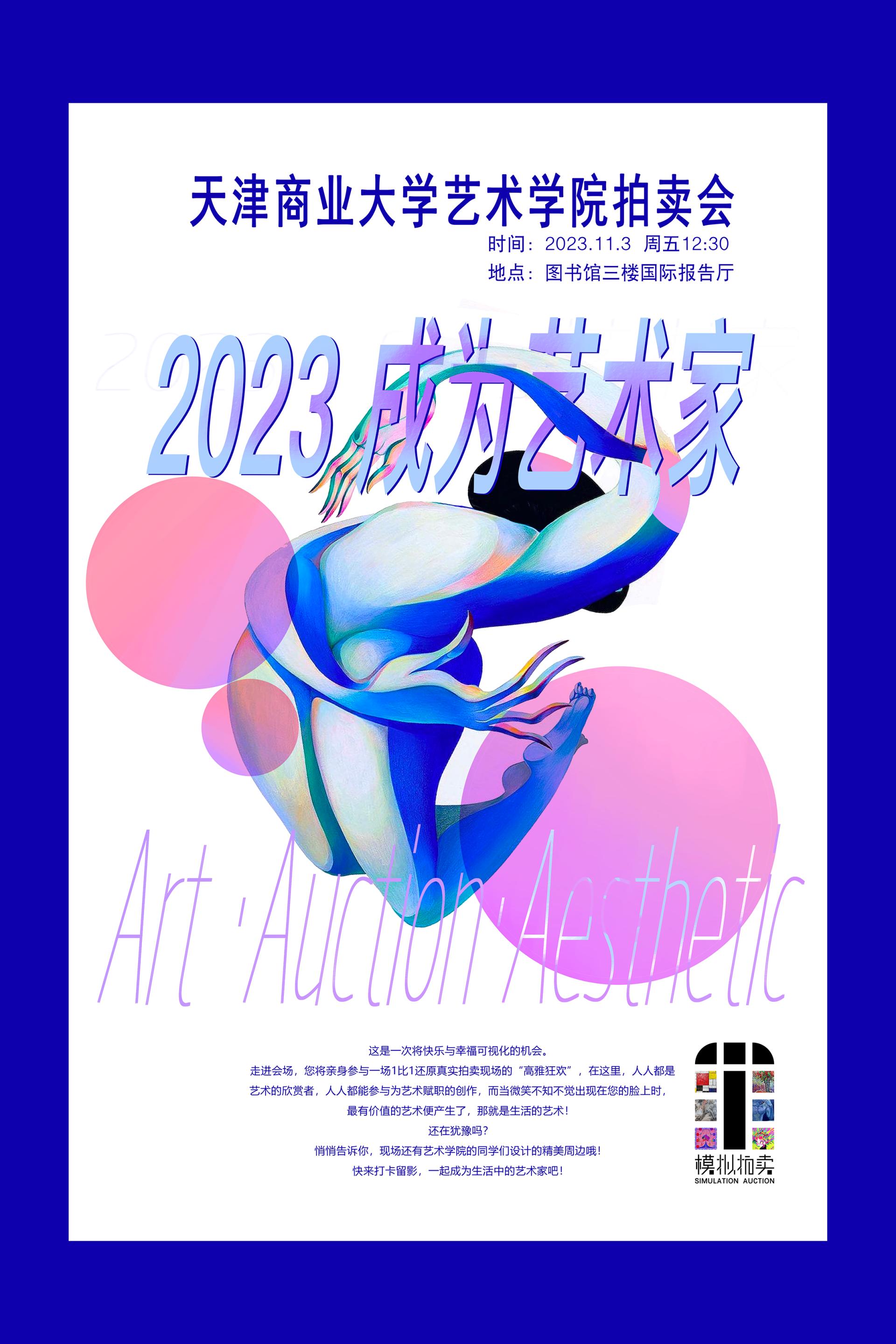 艺术学院将于2023年11月3日12:30,在图书馆三楼国际报告厅举办“一起成为艺术家”beat365英国官方网站艺术学院拍卖会。此活动为艺术学院《模拟拍卖》实训课程的最终课程成果呈现,本次成果展示以“艺术?商业”为实训实践目标,所拍卖标的物均为具有原创性的艺术作品和衍生品。