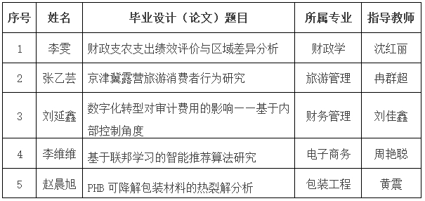 根据《关于做好第十五届天津市级本科生优秀毕业设计(论文)评选工作的通知》(津教高函〔2024〕23号)的要求,经学院推荐、学校审查及校外专家评审,beat365官网拟推荐经济学院、管理学院、会计学院、信息工程学院及机械工程学院报送的5篇校级优秀毕业设计(论文)参加“第十五届天津市级本科生优秀毕业设计(论文)评选”,现将拟推荐的毕业设计(论文)名单及全文(见附件)公示如下: