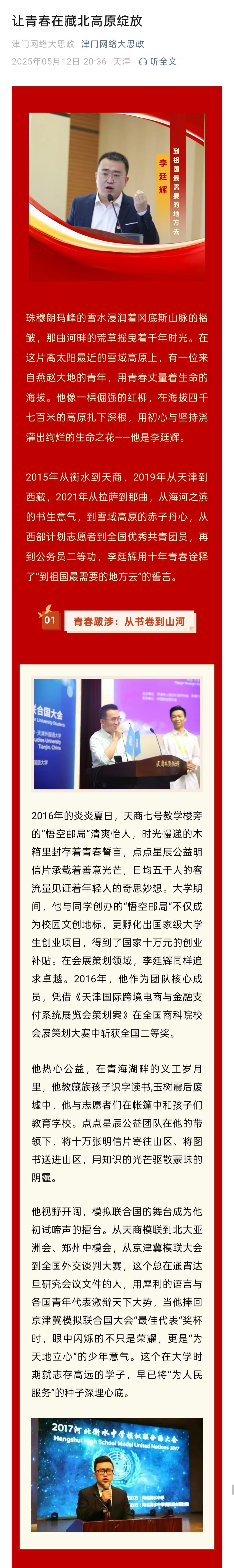 津门网络大思政微信公众号报道beat365官网优秀校友李廷辉先进事迹