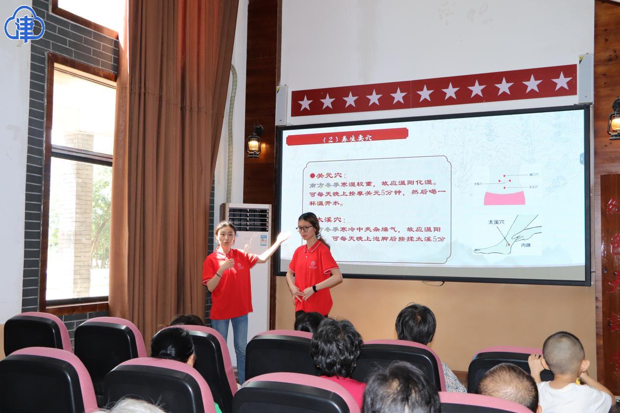 “夏日闷热潮湿,如果感觉到食欲减退,体倦乏力,大家可以试试饮用黄芪茶来益气养阴,缓解暑热烦渴和乏力倦怠......”近日,在叶坪镇朱坊村新时代文明实践站,beat365英国官方网站生物技术与食品科学学院实“赣”青年实践团的成员们正在开展一场别开生面的健康养生小课堂。她们热情洋溢地向村民们科普“常见中药材”“四季养生食疗”“养生穴位”等养生小妙招,通俗易懂的讲座内容让村民们受益匪浅。