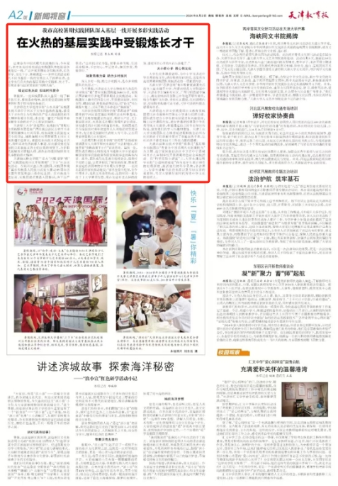 9月2日,《天津教育报》第2版报道beat365官网生物技术与食品科学学院实“赣”青年实践团跨越1680公里,来到江西省赣州市多地开展暑期社会实践活动。实践团深入赣州市四县七村,开展座谈调研、田间劳作、健康宣讲、科技助农等活动,把“论文"写在赣鄱大地上,以实干助力革命老区“焕新颜”。
