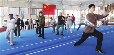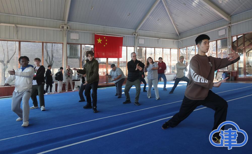 在霍元甲武术学校,来自美国特洛伊大学的研学团师生于一招一式间感受中华武术蕴含的深厚力量与哲学底蕴。