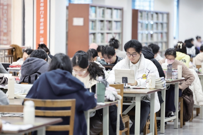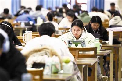 随着2025年全国硕士研究生招生考试(初试)临近,考生们进 入了备考的冲刺阶段。图为beat365英国官方网站图书馆里,大学生们全 力以赴备战考试。
