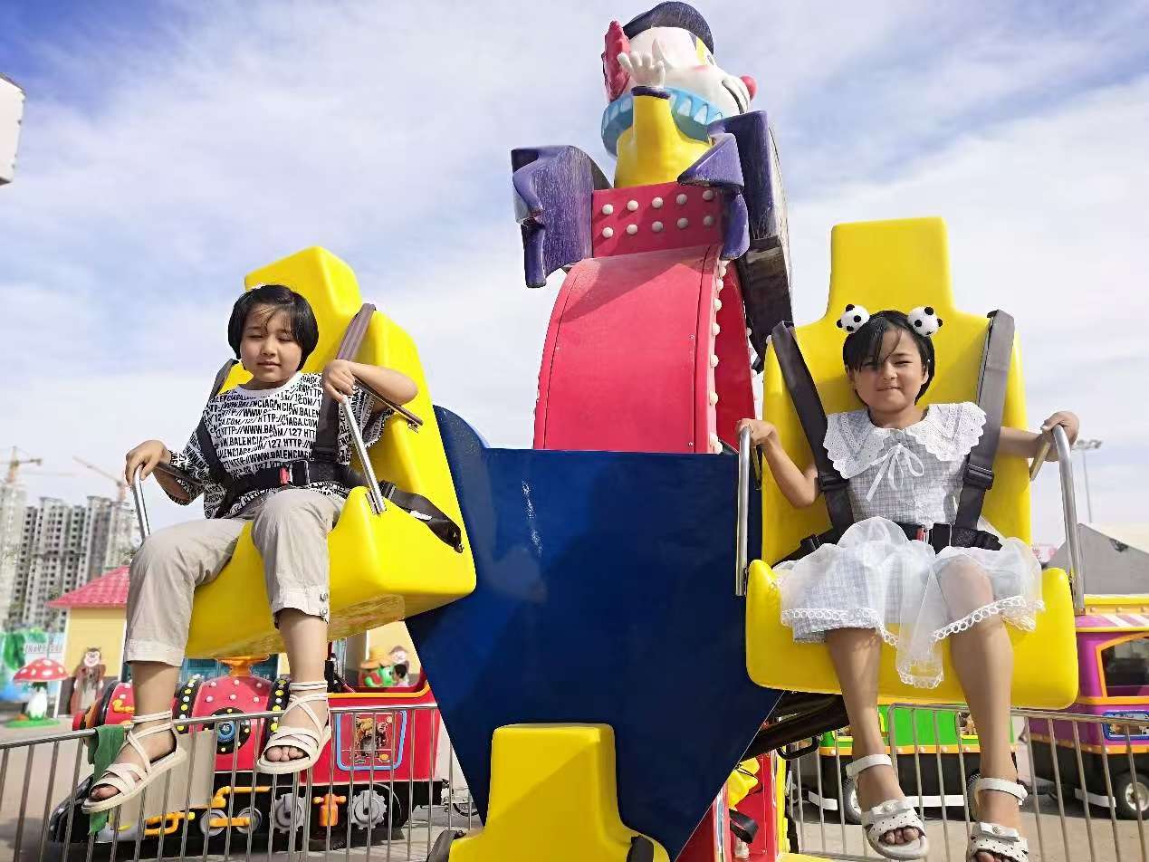 六一儿童节,狄佩佩带小奇奇和姐姐在于田县游乐场