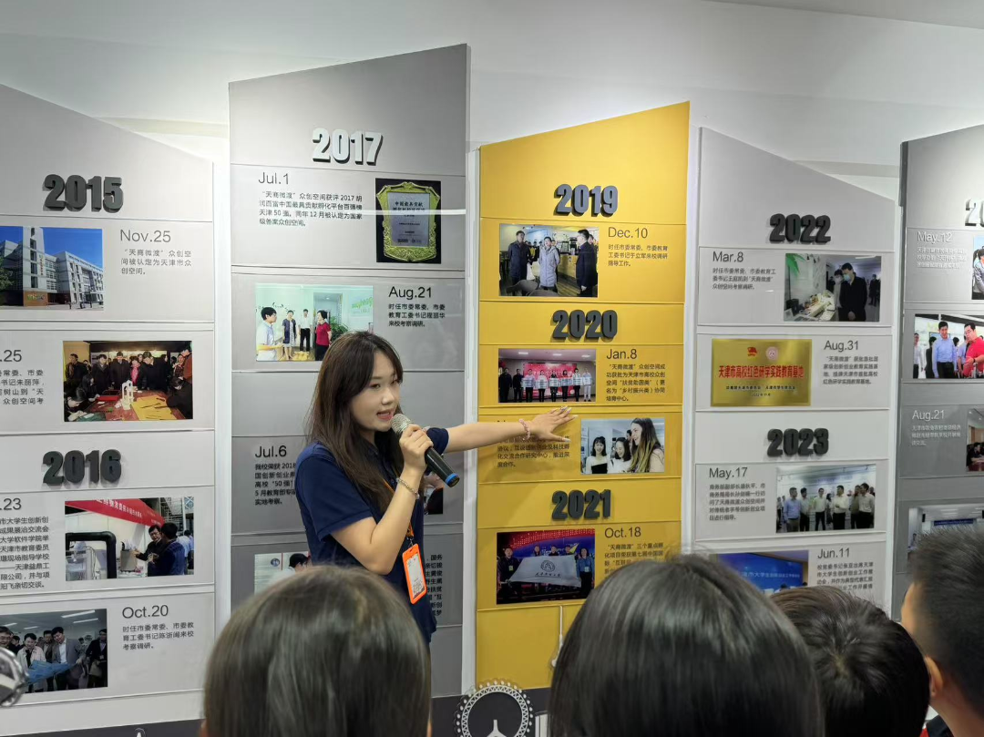 在“天商微渡”众创空间,研学团师生沉浸式体验高校创新创业环境,非遗手作、文创产品等学生创业项目引得孩子们频频驻足,大学生创业者现场演示的3D打印技术更引发阵阵惊叹。“原来大学课堂能做出这么酷的东西!”小学生在与哥哥姐姐热情互动中激发创新创业热情,大学生志愿者则在讲解中深化责任担当。
