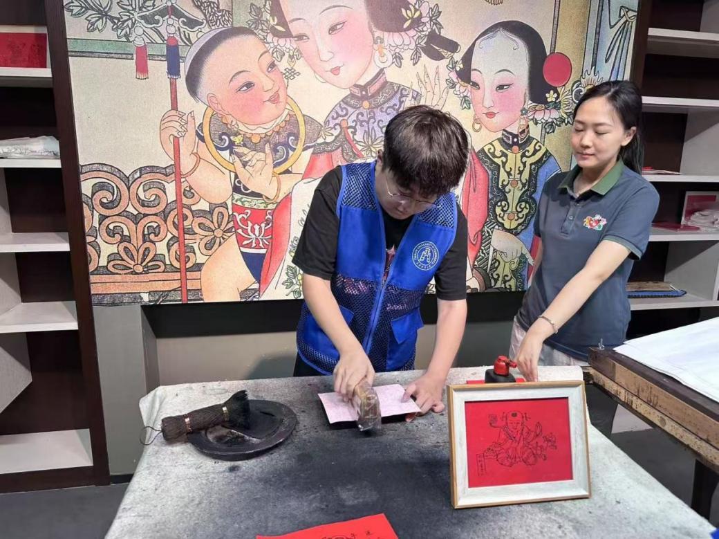 在文化馆、玉成号木板年画和杨柳青剪纸体验馆,“天商蓝”消防安全社会实践团与管理人员和传承人就非物质文化在传承中的经验做法、存在困境等方面进行深入交流,体验到的不仅仅是传统文化积淀,更触摸到了非遗技艺的温度与历史厚度。以“消防视角”下非遗技艺的保护与传承为切口,针对年画刻板、颜料等易燃材料的存放规范,剪纸作品展示与保存中的防火安全等进行宣传,让“保护”不仅停留在技艺传承层面,更落实到物质载体的安全守护上,真正实现了消防安全与文化传承的深度融合,让消防安全与文化传承真正深度相融,为非遗传承筑起坚实的“安全防火线”。