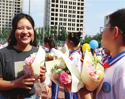 西青区开展了形式多样的教师节活动。在位于精武镇的天津工业大学附属小学,学生为老师们送上鲜花和祝福。