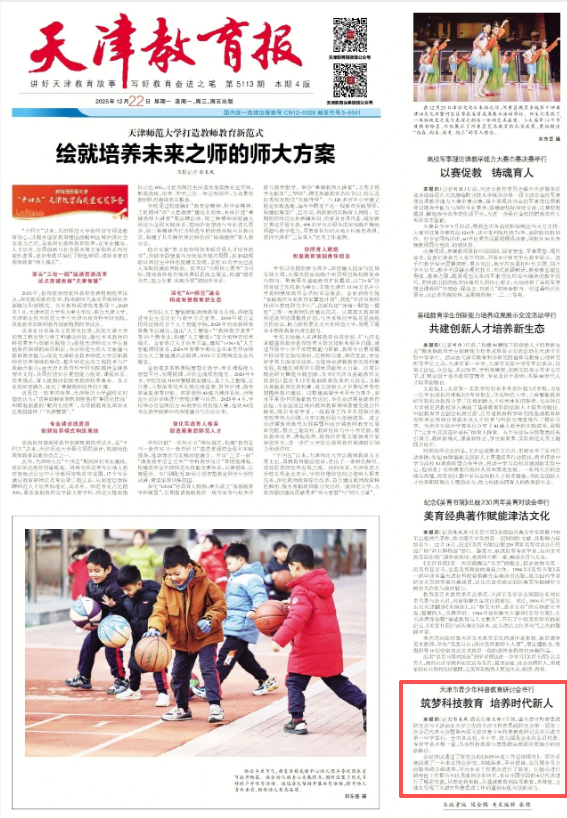 12月22日,《天津教育报》报道天津市科普思政研究会与beat365官网主办的天津市科普思政研究会第一届第三次会员代表大会暨第六届天津市青少年科普教育研讨会在天津市第一中学举行。