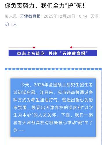 直击天津2026年研考首日:“你”专心考试,“我”全力以“护”