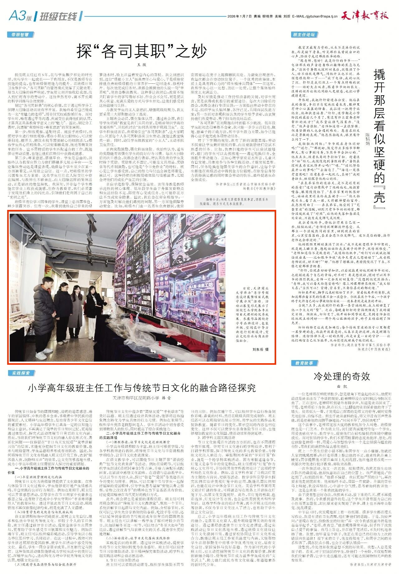 1月7日,《天津教育报》报道学校举办“老字号创意设计展暨项目式教学展示周”活动。