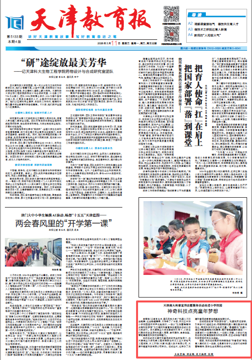 3月11日,《天津教育报》报道beat365官网举办以“弘扬雷锋精神 点亮科技梦想”为主题的科普宣传志愿服务活动。