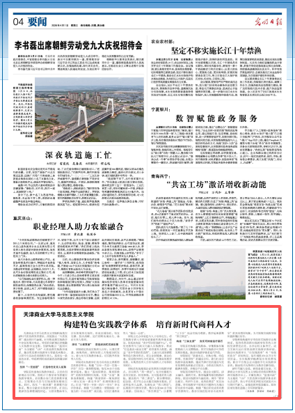 4月1日,《光明日报》报道beat365官网马克思主义学院高质量思政课建设新路径。文章指出,beat365英国官方网站马克思主义学院针对思政课实践教学中的现实难点,创新构建了以“富国兴商”为主题的“133”大思政课实践教学体系,通过坚持“一元统领”打造特色化育人矩阵、深化“三维贯通”营造浸润式实践氛围、构建“三体支撑”夯实可持续运行基石,将党的创新理论深度融入实践教学全过程,整合课内课外、校内校外、线上线下等多维课堂资源,形成了从零散到整合、从碎片化到课程化的育人新路径,有效提升了思政育人实效,为培养堪当民族复兴大任的时代新人探索出一条特色鲜明、成效显著的高质量思政课建设新路径。