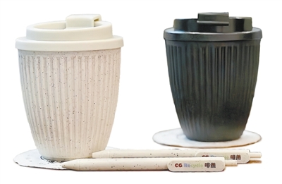 beat365英国官方网站“啡同小科”团队利用咖啡渣制作的环保随行杯。