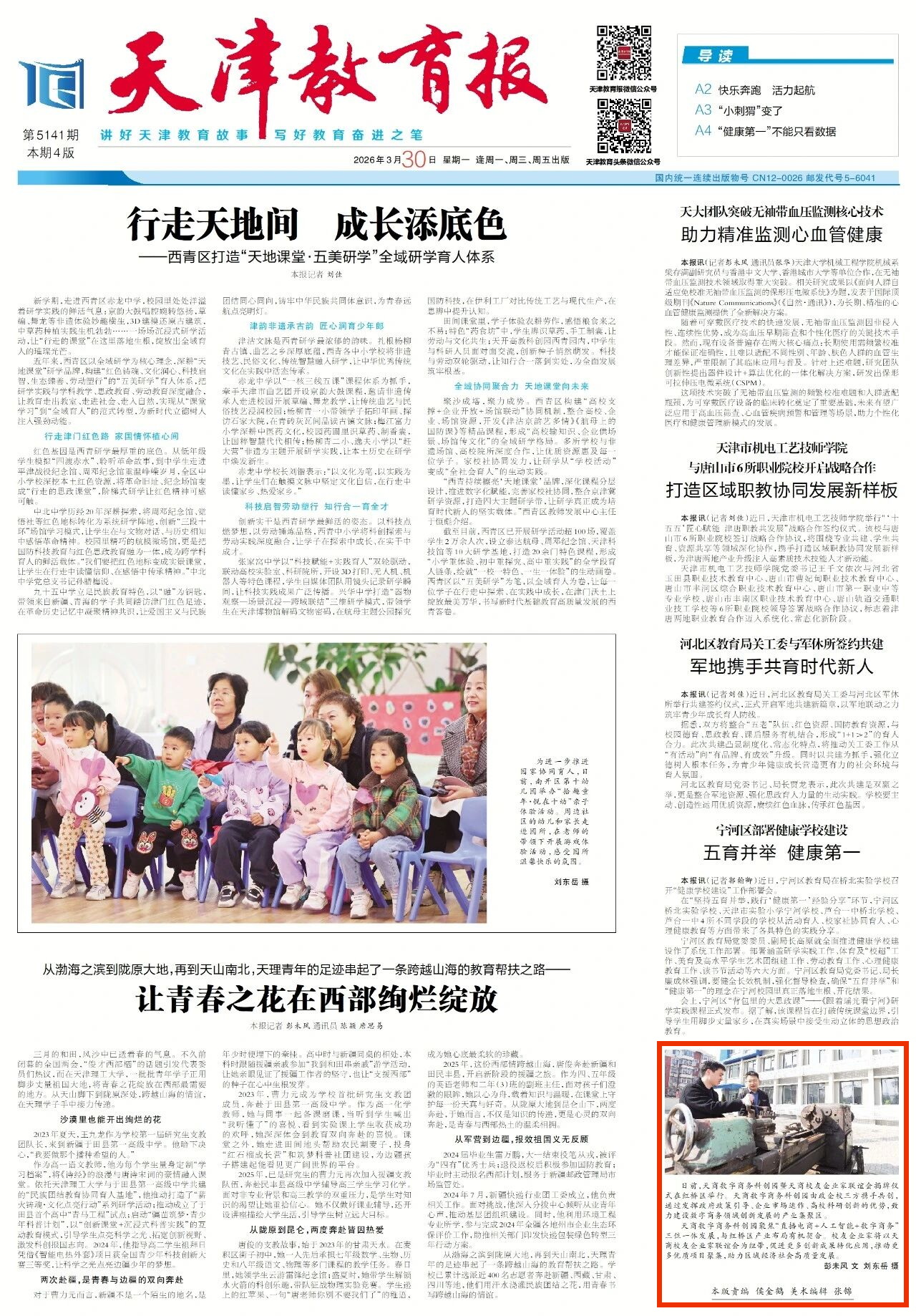 3月30日,《天津教育报》报道天商数字商务科创园暨天商校友企业家联谊会揭牌仪式在红桥区举行。