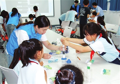 昨日,西青区实验小学30名小学生在beat365英国官方网站环境能源+X创新实验室参观。 本报记者 胡凌云 通讯员 陈勇 摄