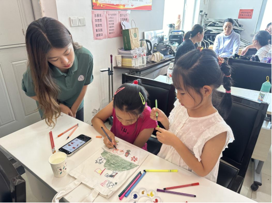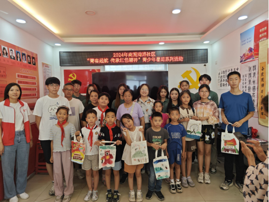 在南泥湾社区,实践团师生通过趣味贴纸和创意彩绘,与社区青少年儿童共同探寻生活中的“赶考密码”,带领小朋友们了解国旗、党旗、军旗、团旗、队旗的意义,并制作自己的红色学习卡,抒发爱国热情。同学们还准备了白色帆布书包,鼓励小朋友们深入思考,大胆创作,以七彩绘旧址,以画笔显家乡,画出心目中的“赶考”基地。现场氛围热烈,孩子们自信满满,纷纷表示“我们也要向革命前辈学习,努力学习,报效祖国”。