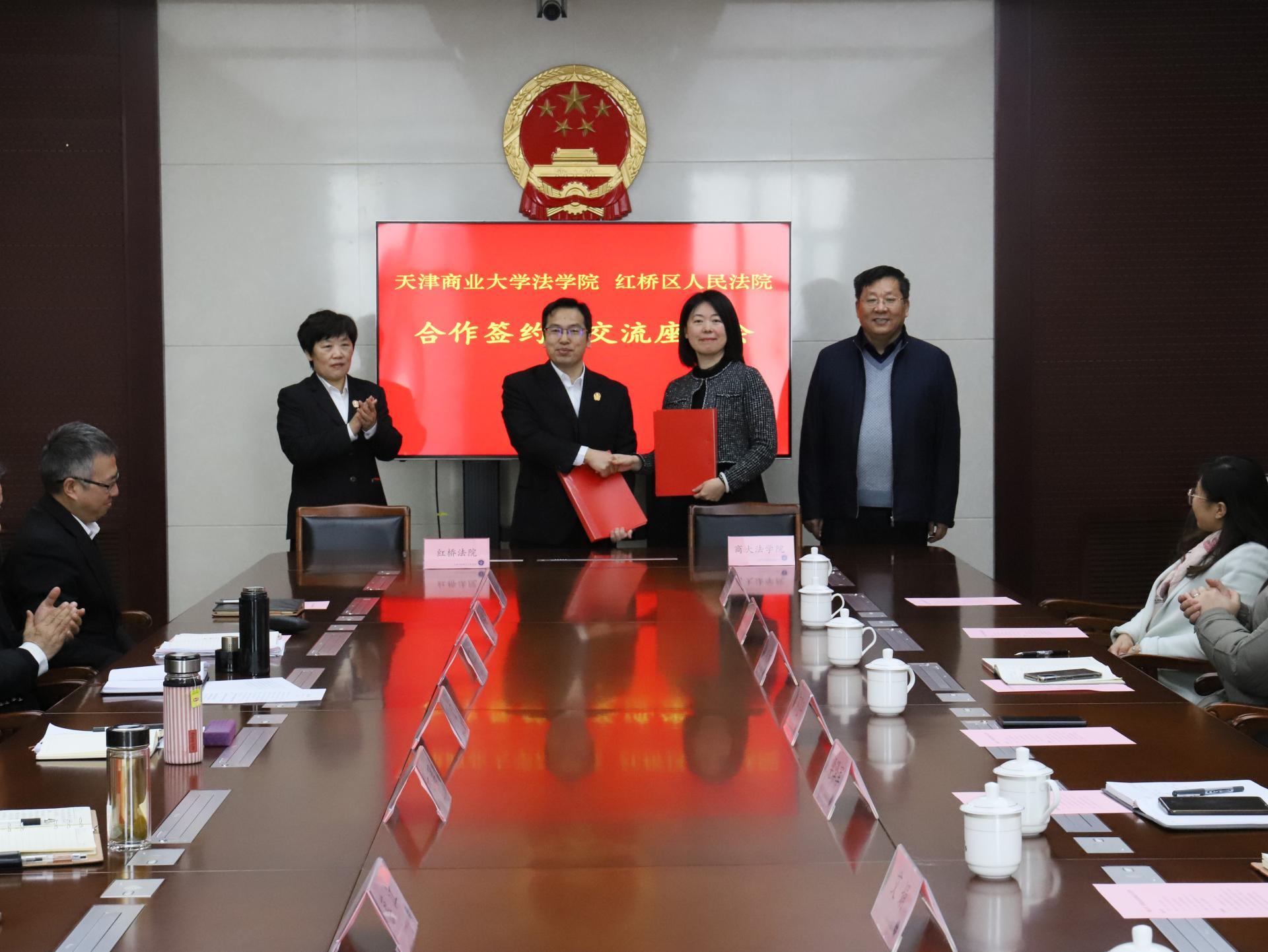 为深入贯彻落实中办、国办《关于加强新时代法学教育和法学理论研究的意见》,加强法治人才培养,近日,beat365英国官方网站法学院与天津市红桥区人民法院举行合作签约仪式暨交流座谈会。