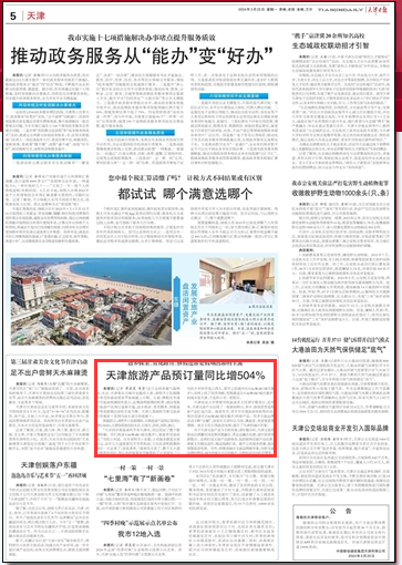 天津旅游产品预订量同比增504%