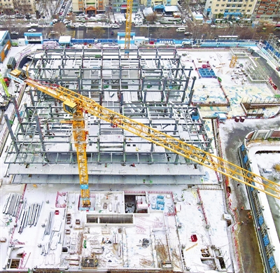 图为雪后的项目建设现场。