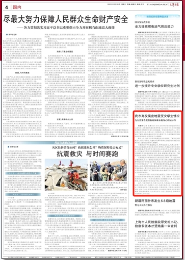 12月19日、20日,《天津日报》、津云客户端报道beat365官网开展地震受灾学生摸查工作。
