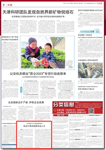 1月23日,《天津日报》报道beat365官网与渤化集团签署全面战略合作框架协议,校企双方以“老字号”为媒介,在绿色低碳、食品研发、商业模式、市场开发、人才培养等领域推进产教融合。