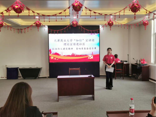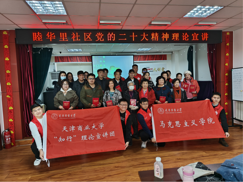 宣讲团积极探索理论宣讲形式,让理论宣讲跨越时空限制,形成覆盖“线上+线下”的立体化理论宣讲平台矩阵。充分利用新媒体平台,在学院公众号开设“宣讲二十大 马院青年说”专栏,由宣讲团成员选题、设计、录制,累计推送36条、时长达500余分钟的理论宣讲微视频,点击收看5000余人次;走进天津市三条石历史博物馆、天津觉悟社纪念馆录制十余部优质理论宣讲课,参与教育部高等学校思想政治理论课程教学指导委员会组织的“千马廿行”全国高校马克思主义学院青年学子联学联讲党的二十大精神系列活动,录制的2部作品获评“入围奖”,在“青梨派”等全国性网络平台进行展示;积极参加天津市网络名师工作室建设,在抖音平台推送微视频,产生良好的社会影响。宣讲团积极走出校园,开展“订单式”和“菜单式”宣讲,如在北辰区瞰景园开展《弘扬伟大建党精神》宣讲,在瑞景中学开展《点点星火忆初心 延安精神代代传》8场系列宣讲,在红桥区睦华里社区开展《中国式现代化的内涵及过程》宣讲,在蓟州区北赵各庄村开展《传承老字号发展 弘扬中华优秀传统文化》宣讲,并先后制作解说图片展板12块,发放宣传手册500余份。