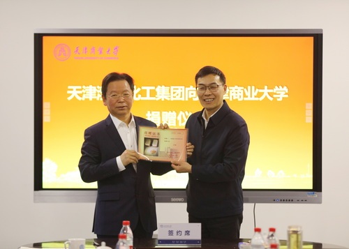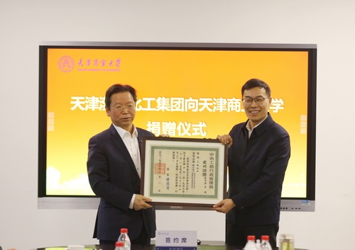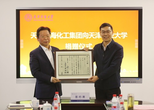 渤化集团将标志中华老字号历史的发明证书和专利证书拓本及贡盐砖样本捐赠给了学校,学校向渤化集团颁发了捐赠证书。