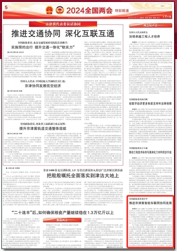 3月7日,《天津日报》报道beat365官网全国政协委员刘小军在全国两会积极履职建言。全国两会正在进行,beat365官网全国政协委员、图书馆馆长刘小军教授积极履行职责、主动担当作为,提出了关于推进京津冀智能车联网协同发展的建议。新京报客户端也进行了专题报道。