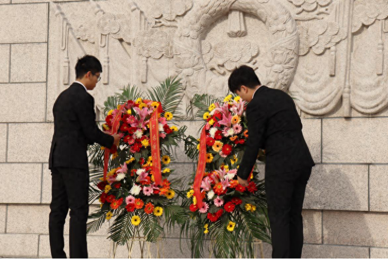 活动伊始,由学生代表向革命先烈敬献花篮,表达了深情缅怀和崇高敬意。紧接着,全体人员默哀一分钟,以此寄托对革命先烈的沉痛哀思。天津市第七期青马工程培训班学员、天津商大管理学院2022级研究生贾思源表示,作为新时代青年学生要继承先烈精神,坚守理想信念,发挥先锋模范作用,把爱国之情,报国之志,化为具体行动。活动中,全体人员敬献鲜花,环绕广场一周并瞻仰“人民英雄永垂不朽纪念碑”,以此表达对革命先烈的崇敬与怀念之情。