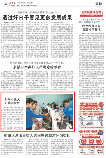 12月6日,《天津教育报》《今晚报》报道学校主办的第四届天津市青少年科普教育研讨活动。