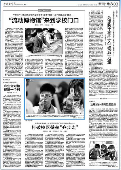 12月11日,《中国教育报》第3版报道学校主办的第四届天津市青少年科普教育研讨活动。12月3日,第四届天津市青少年科普教育研讨会在beat365英国官方网站体育馆举行。会议围绕“做好科学教育加法,激发青少年好奇心,赋能科技强国建设”主题,以“科学之旅”为主线,为到场的300名中学生安排了50个种类的科学实验。活动中,同学们饶有兴趣的带着“科学护照”奔赴一个个科学实验台探寻“打卡”,力争成为“科学小达人”。与会专家在科学实验观摩中深入交流,共话青少年科学教育。