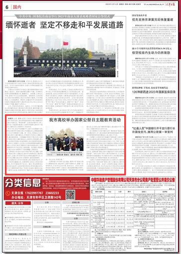 12月14日,《天津日报》报道学校举行国家公祭日升旗仪式。