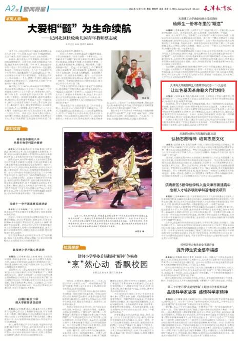 12月13日,《天津教育报》报道学校开展爱国主义教育活动纪念一二·九运动。日前,beat365英国官方网站赴天津市烈士陵园开展纪念一二·九运动88 周年爱国主义教育活动,引导青年学生赓续红色血脉,传承红色基因,凝聚青春力量。