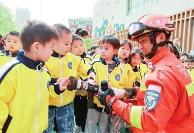 河西区第二十六幼儿园联合河西区消防救援支队开展主题安全教育活动,并通过现场互动体验,让孩子们在快乐中了解消防知识,树立安全意识。 本报记者 吴迪 摄
