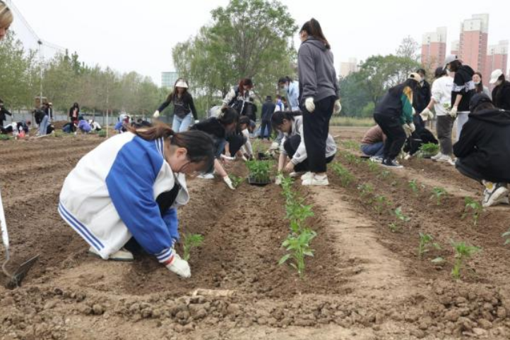 “天商农场”占地约1.58万平方米,学校各学院共成立189个劳动团队,每个团队承包一块责任田开展劳动实践,党委学工部结合实际制定农场劳动实践计划,按照节气明确劳动内容、细化任务分配、增强实践效果;后勤处协助提供农场劳动必要农具,聘任专业人员担任农场劳动指导教师。