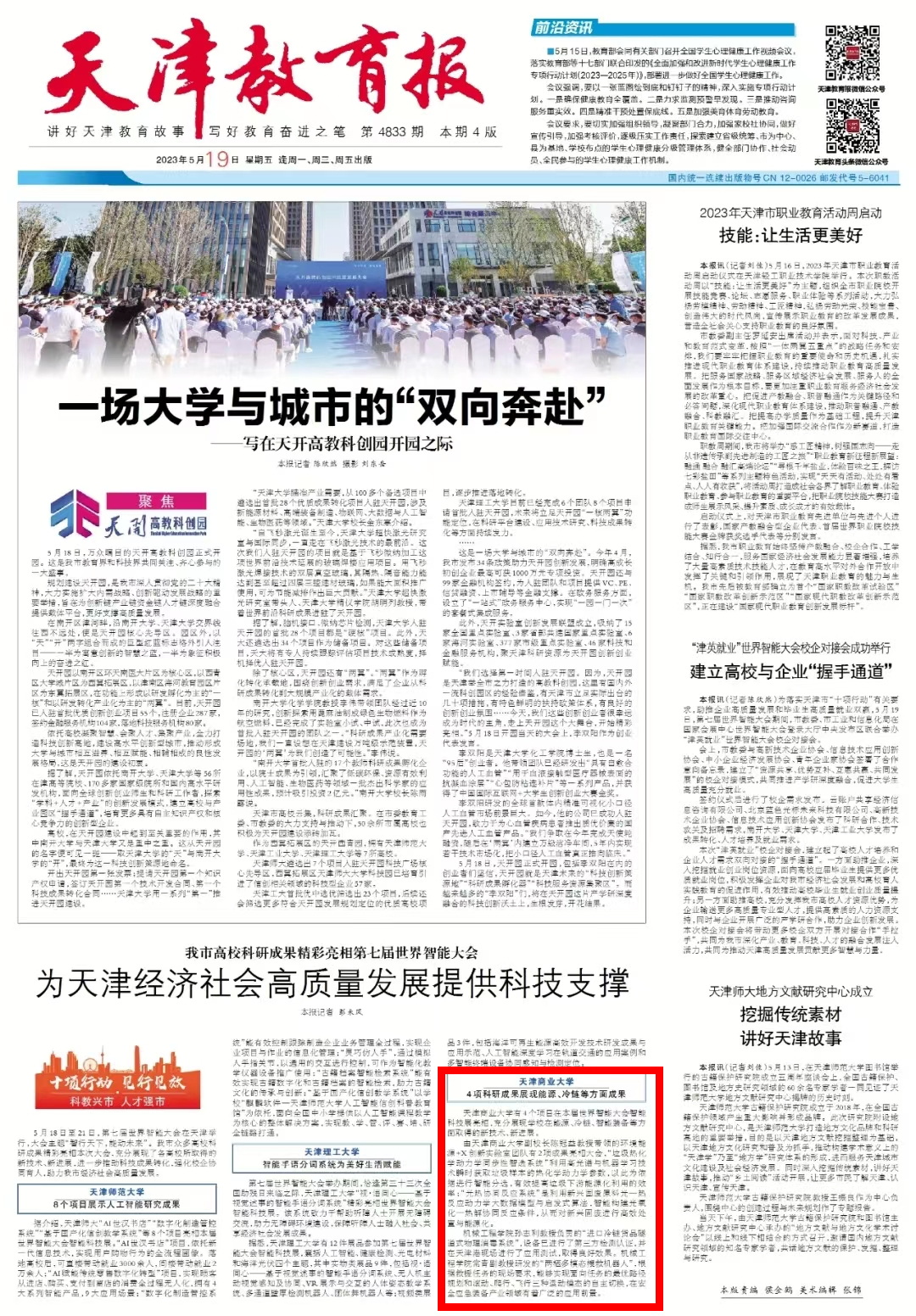 5月19日,《天津教育报》报道学校科研成果亮相第七届世界智能大会。