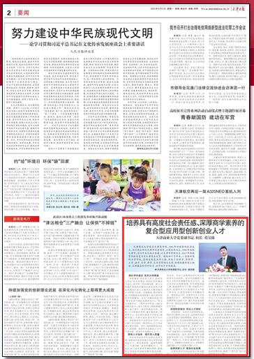 6月5日,《天津日报》以“培养具有高度社会责任感、深厚商学素养的复合型应用型创新创业人才”为题报道学校人才培养成效。