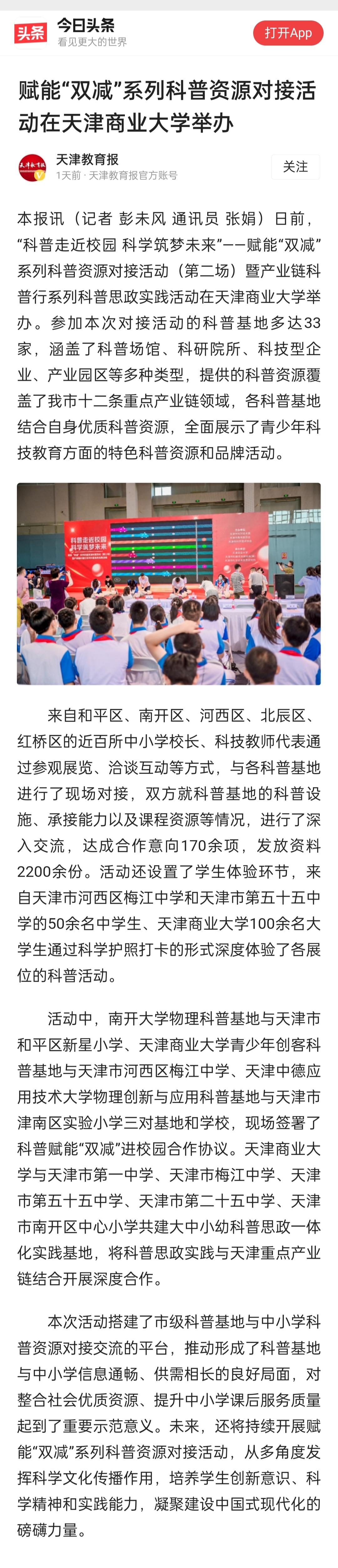 天津教育报头条号报道截图如下: