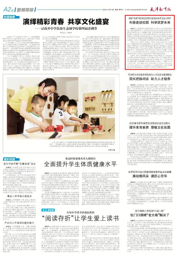 6月19日,《天津教育报》A2版报道学校举办赋能“双减”系列科普资源对接活动。