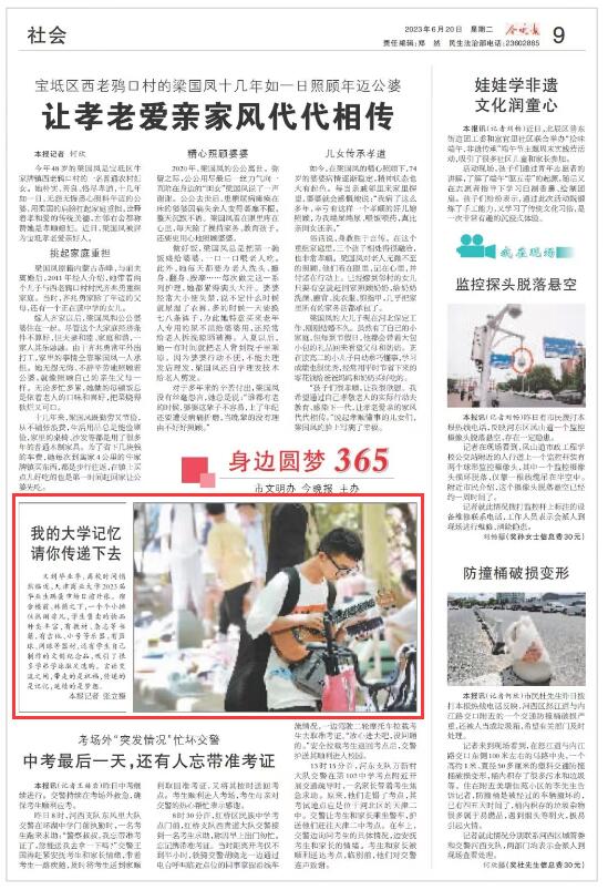 6月20日,《今晚报》社会版报道学校2023届毕业生物品交易市场。