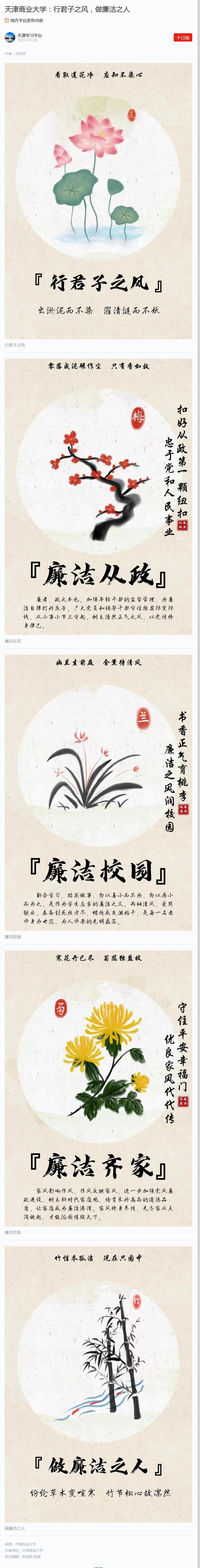 日前,学习强国天津学习平台“廉洁润初心,铸魂担使命”优秀作品展栏目报道学校廉洁教育作品。